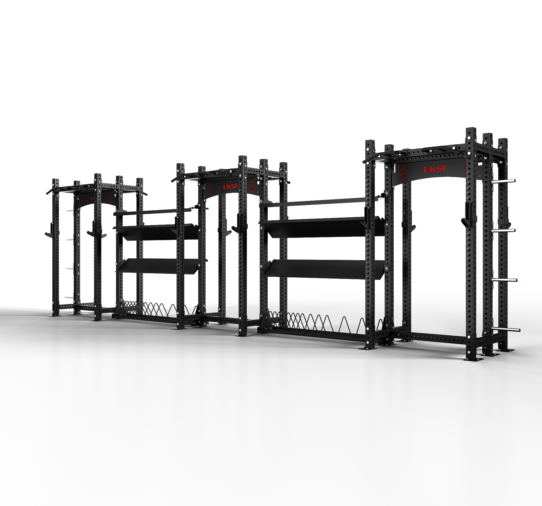 The Stryker range has been engineered for functional fitness, strength training and high-use environments. Leading the range is the UKSF Stryker Dual Power Rack, designed to support everything from heavy barbell lifts to gymnastics and accessory work.